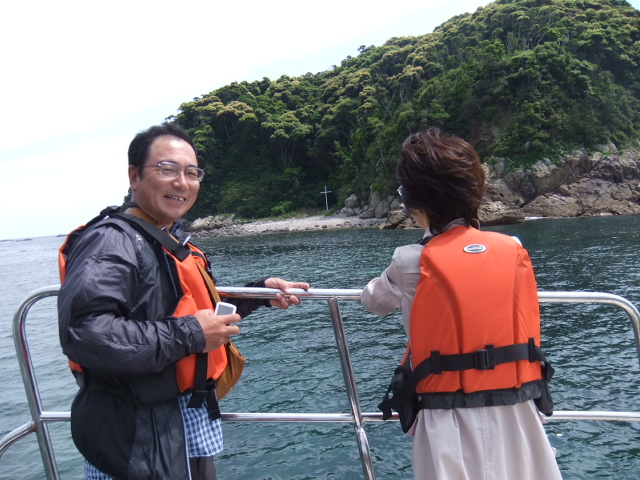 4月24日(木)、県内からお越しのお客様が島野浦クルージングを楽しまれました。 当日は天気も良く絶好のクルージング日和。 クルージングをする際の楽しみの一つでもある、鼻熊と呼ばれる巨大アーチの下を船で通過することもできました。