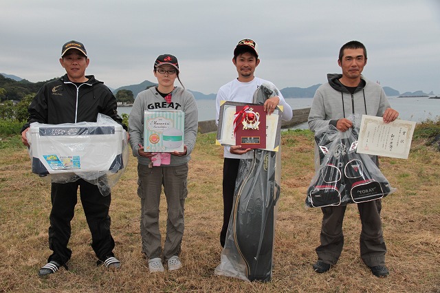 【レディース賞】①松田由紀美(美郷町)2・26キロ=作兵衛②甲斐生子(延岡市)1・92キロ=作兵衛③茂志津江(延岡市)チヌ0・98キロ=フクザキ