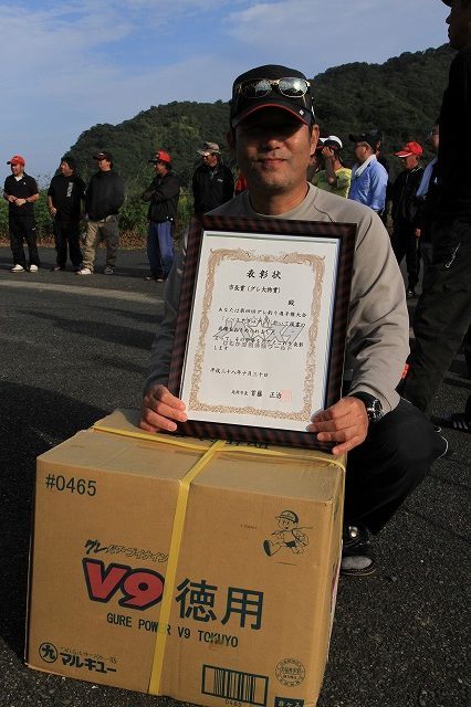 グレの1匹重量で競う大物賞はエントリーが少なく、平バエで0・63キロを釣った飯沼毅さん(51)=延岡市片田町=が、延岡市長賞を射止めました。