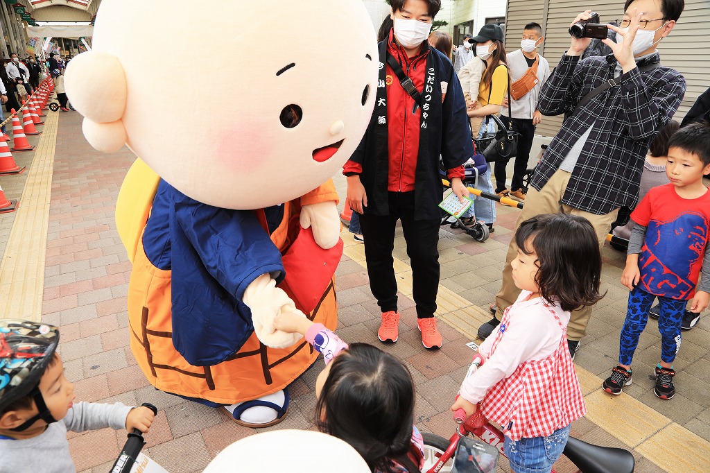 中心市街地の活性化を目的に、平成30年度から開催しています。「こだいっちゃん」は同商店街近くの今山にある「日本一の弘法大師像」をPRするマスコットキャラクター。