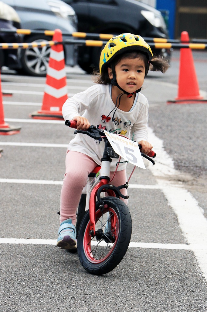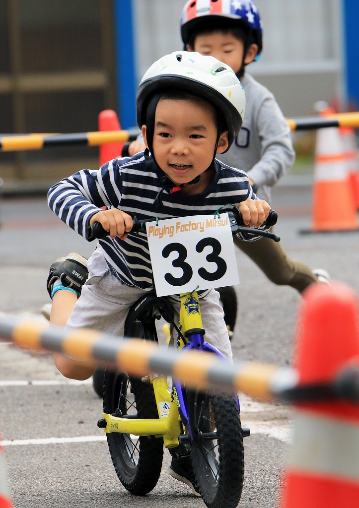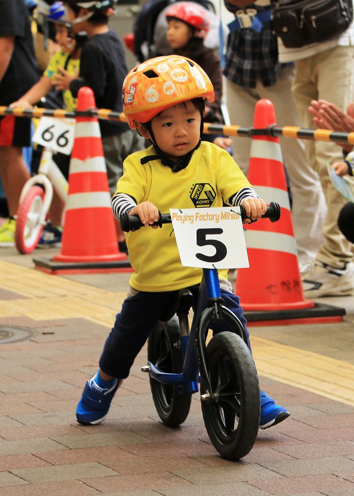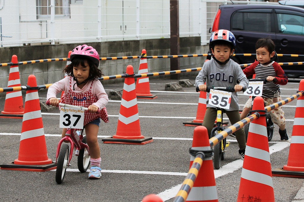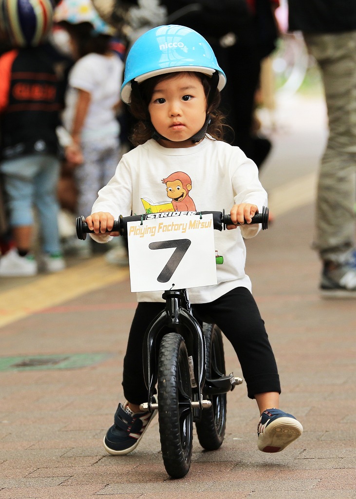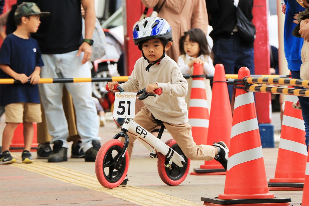 レース直前にエンジントラブル(泣き出し)で出走を断念した子どもや、母親の励ましを受けながら最後まで走りきる子どもの姿もあり、応援の人垣が笑顔にあふれました。途中で転倒しながらも走りきった子どもには、「ガンバレー」の声援と惜しみない拍手が贈られました。