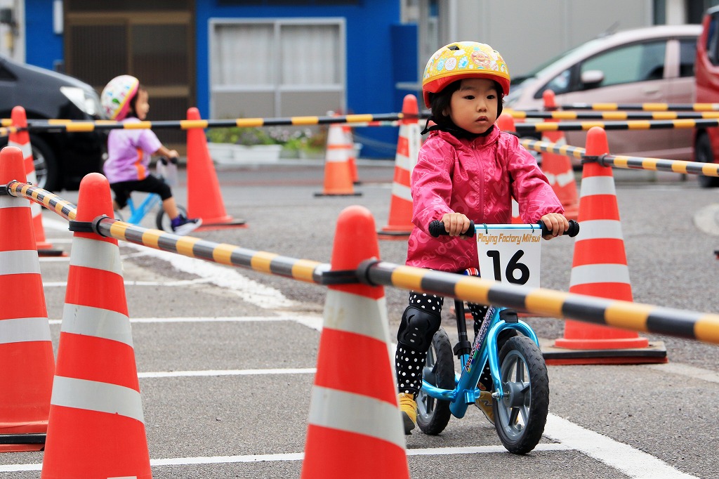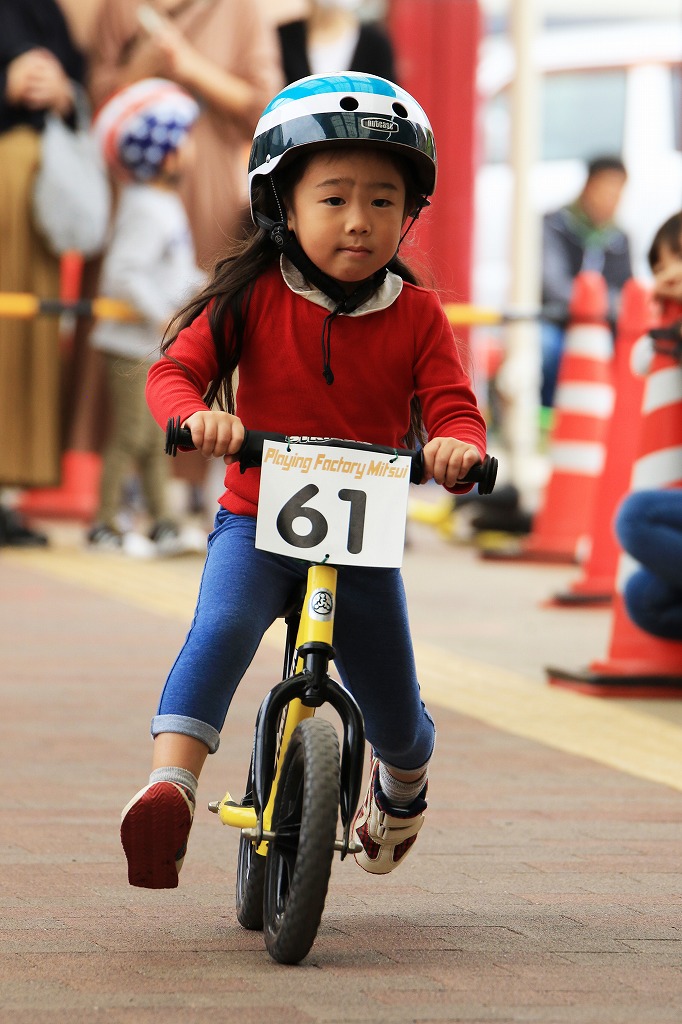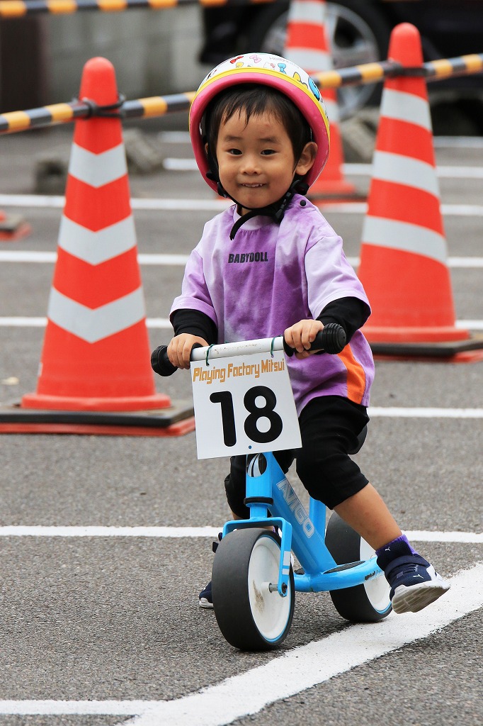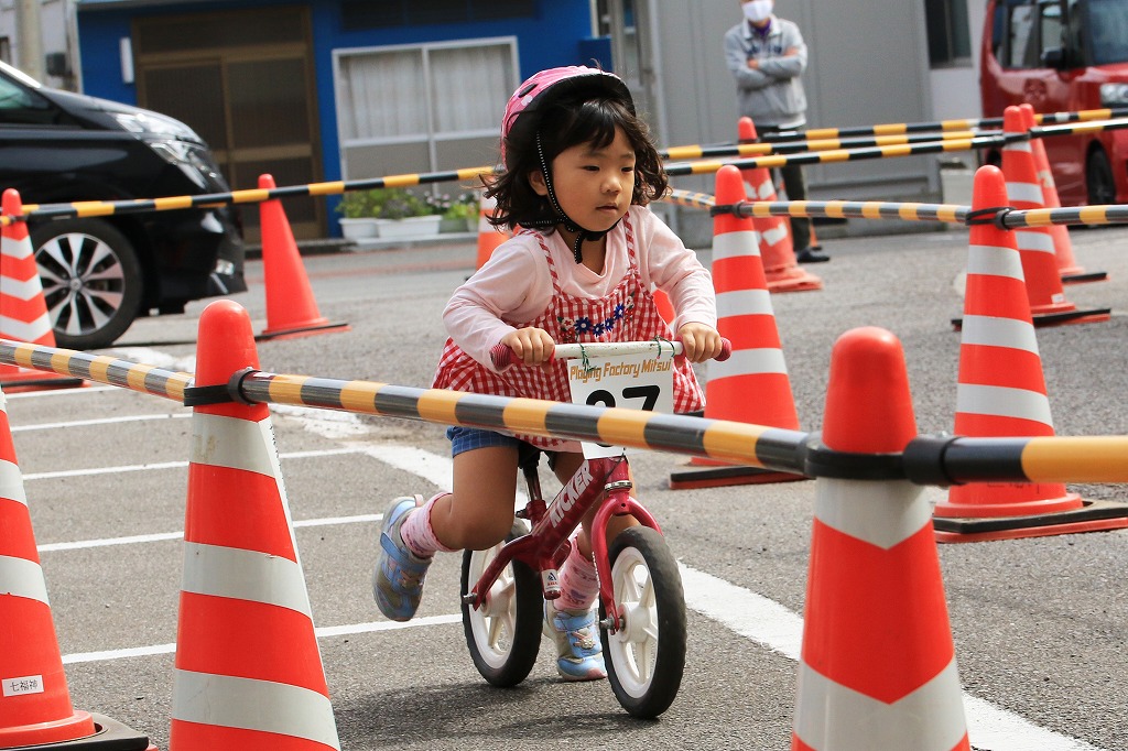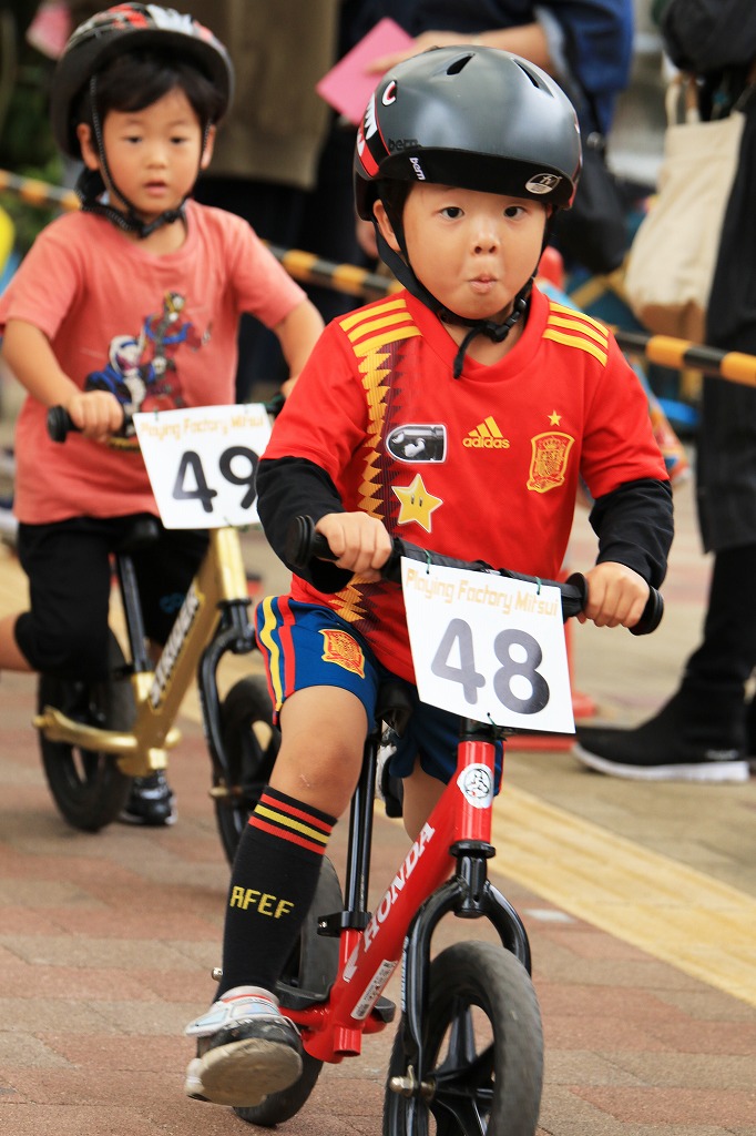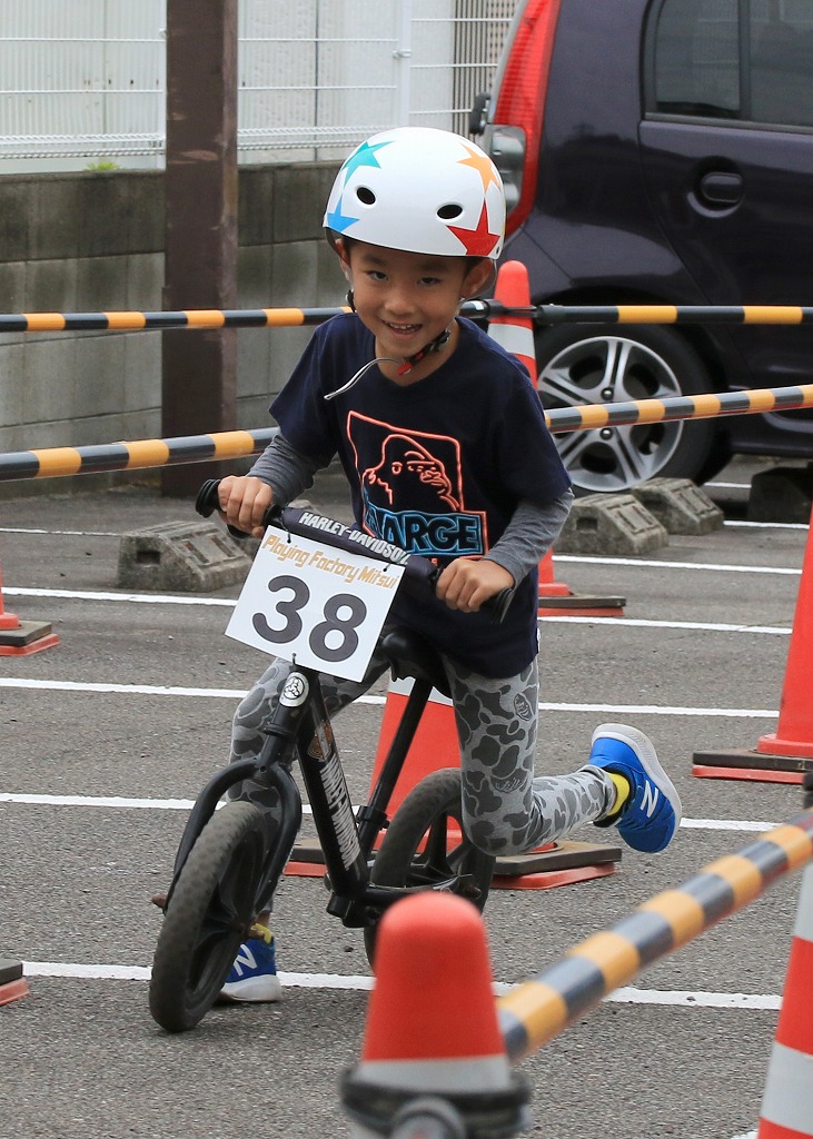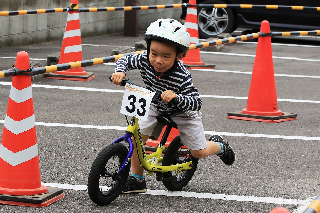 レース直前にエンジントラブル(泣き出し)で出走を断念した子どもや、母親の励ましを受けながら最後まで走りきる子どもの姿もあり、応援の人垣が笑顔にあふれました。途中で転倒しながらも走りきった子どもには、「ガンバレー」の声援と惜しみない拍手が贈られました。