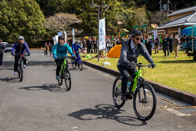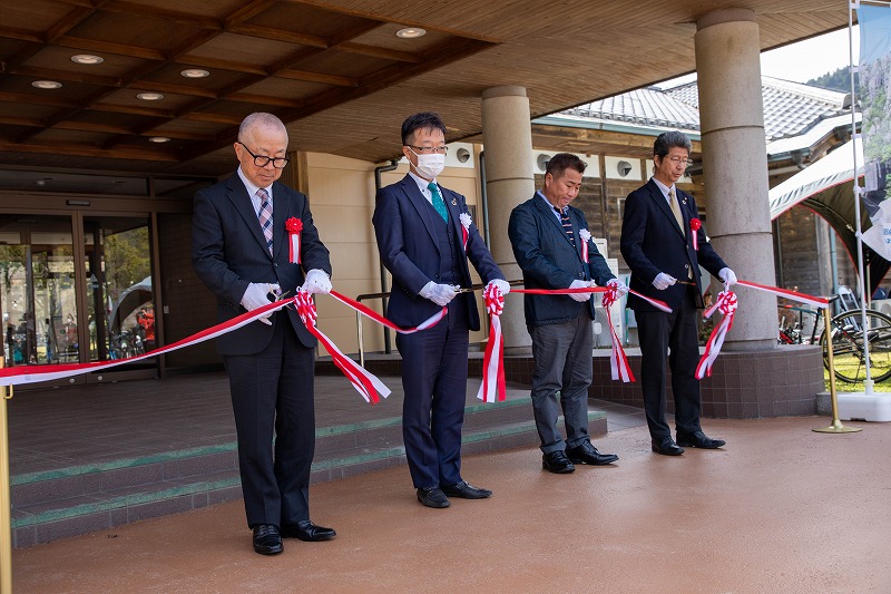 令和9年に登録10周年を迎える祖母・傾・大崩ユネスコエコパークの拠点、また延岡市のアウトドア観光の拠点として延岡市がリニューアル工事を進めてきました。オープンに先立ち3月30日には読谷山洋司市長らが出席し、記念式典が開かれました。